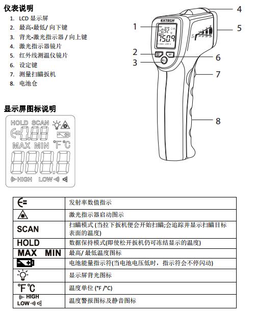 二、EXTECH IR260 儀表圖示 :
