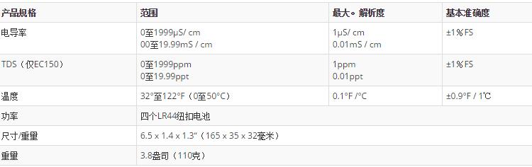 測(cè)量單位包括μS/ cm,mS / cm,ppm,ppt