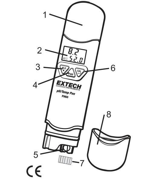 內(nèi)置電極,傳感器蓋,內(nèi)部pH電極保護(hù)蓋和4個LR44紐扣電池