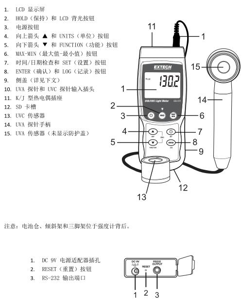 包含的配件 使用手冊、UVA 光強(qiáng)傳感器、UVC 光強(qiáng)傳感器、硬殼便攜包、AC 與 DC 9V 電源適配器、電池與用戶指南