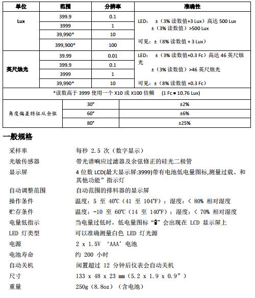 三、EXTECH LT40 規(guī)格特征 :