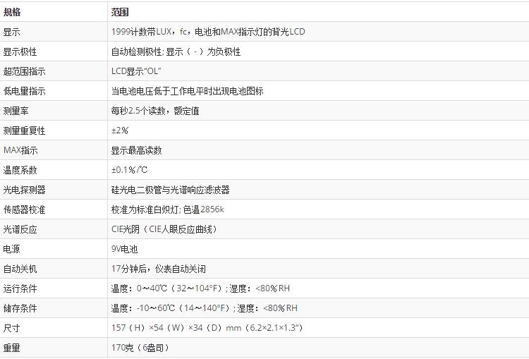 測(cè)量光強(qiáng)達(dá)4000Fc / 40000Lux,測(cè)量速度為1.5次/秒