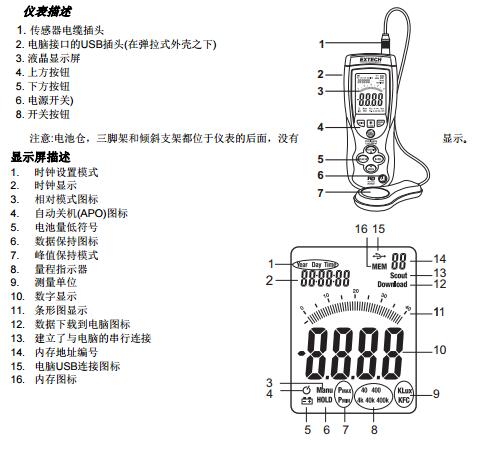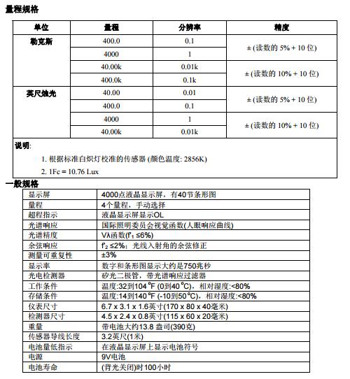 HD450測量照明度(Lux)和尺燭光(Fc)?HD450是數(shù)據(jù)記錄儀,有電腦接口和WindowsTM兼容性軟件,可以下載數(shù)據(jù)。儀表最多可以保存16000個數(shù)據(jù),可下載到電腦上,在儀表的液晶顯示屏上可以直接保存并查看99個讀數(shù)。 該儀表在出廠前完成了全部測試和校準,如精心使用,該儀表能提供多年的可靠服務(wù)?