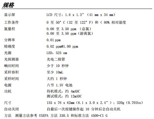 測(cè)量游離和總氯達(dá)到3.50ppm,分辨率為0.01ppm