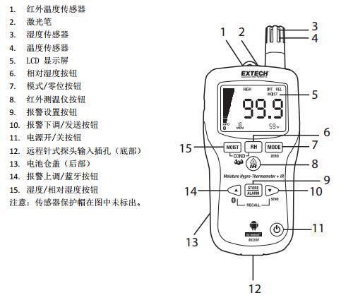 MO300 濕度計,它配有藍(lán)牙功能,可與 Android 應(yīng)用程序 ExView?MO300 配套使用。這款無針式水分計集成享有專利的內(nèi)置紅外測溫儀并可存儲 20 個讀數(shù)。它使用無針式水分傳感器(內(nèi)附針式水分探頭)檢測木材和其他建材中的水分,不會損壞材料表面。使用內(nèi)置探頭及享有專利設(shè)計的非接觸式紅外測溫儀測量濕度和氣溫。高級功能有每磅谷粒數(shù)、露點(diǎn)和蒸汽壓計算。該儀表在交付前均經(jīng)過完整測試及校準(zhǔn),只要妥善使用,您便可常年享受其可靠服務(wù)。