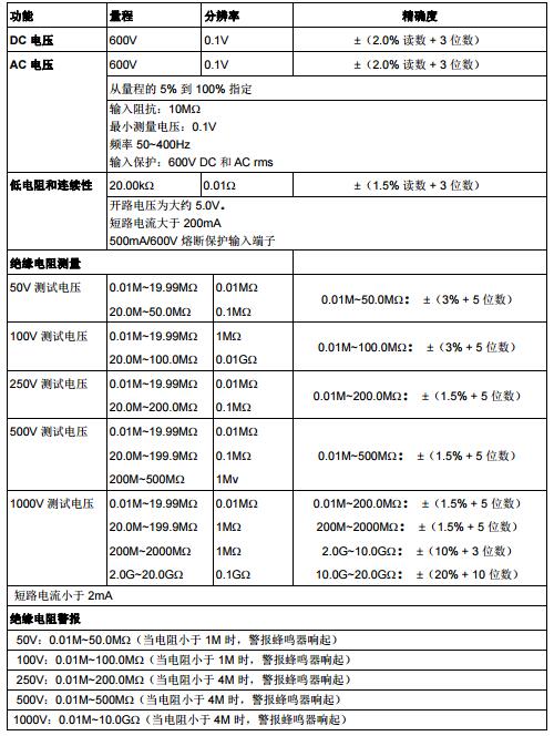 ? 八 (8) 個(gè)絕緣電阻測(cè)量范圍(自動(dòng)量程)