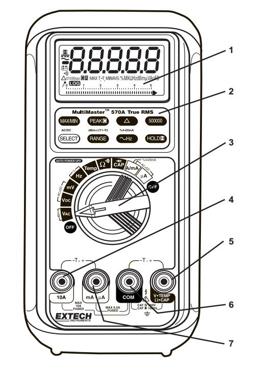7) 輸入插孔 (+)毫安培, 微放大器,T2 (+) 函數(shù)