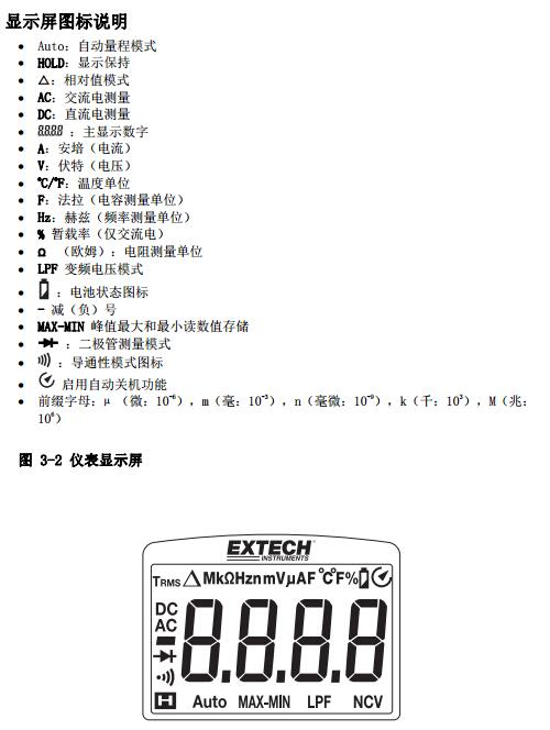 4. 儀表默認(rèn)使用 Auto Range 模式(Auto 會顯示在 LCD 顯示屏上)。按下 R 按鈕進(jìn)入手動量程模式。按下 R 按鈕可逐一跳過這些量程。按下并按住 R 按鈕返回 Auto Range 模式(Auto 會顯示在 LCD 顯示屏上)。