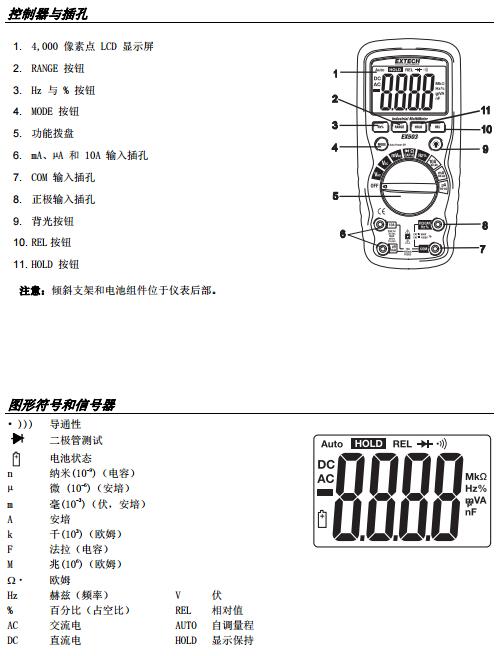 EX503 自動(dòng)量程萬(wàn)用表。此儀表可測(cè)量交流/直流電壓、交流/直流電流、電阻、電容、頻率、二極管測(cè)試以及導(dǎo)通性加熱電偶溫度。它采用防水設(shè)計(jì),堅(jiān)固耐用,可在重負(fù)荷工作條件下使用。正確并小心使用此儀表,您便可常年享受其可靠服務(wù)。