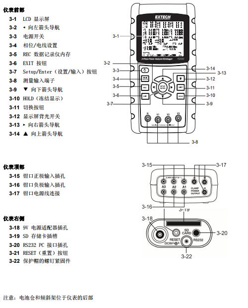 二、EXTECH PQ3450-2 儀表圖示 :