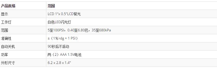 AUT10是一款數(shù)字輪胎壓力表,具有照明白色LED燈頭,可以更準(zhǔn)確地定位閥桿,精度為±(1%+ 1PSI)。3.5位背光LCD和自動(dòng)關(guān)機(jī)功能。包括兩節(jié)1.5V AAA電池。CE認(rèn)證和一年保修。