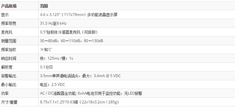 三、EXTECH SL130W 規(guī)格特征 :