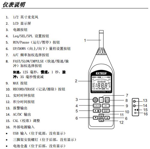 6. 顯示屏上的數(shù)字指示表示當(dāng)前測得的聲級。此讀數(shù)每秒鐘更新一次。