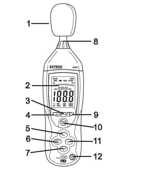 1. 風(fēng)吹過(guò)麥克風(fēng)增加噪音測(cè)量。適用時(shí)使用提供的擋風(fēng)玻璃罩麥克風(fēng)。