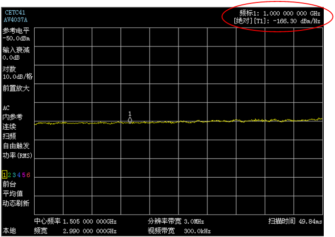 開啟內(nèi)部前置放大器,顯示平均噪聲電平(DANL)低至-165dBm/Hz(1GHz處,典型值)。