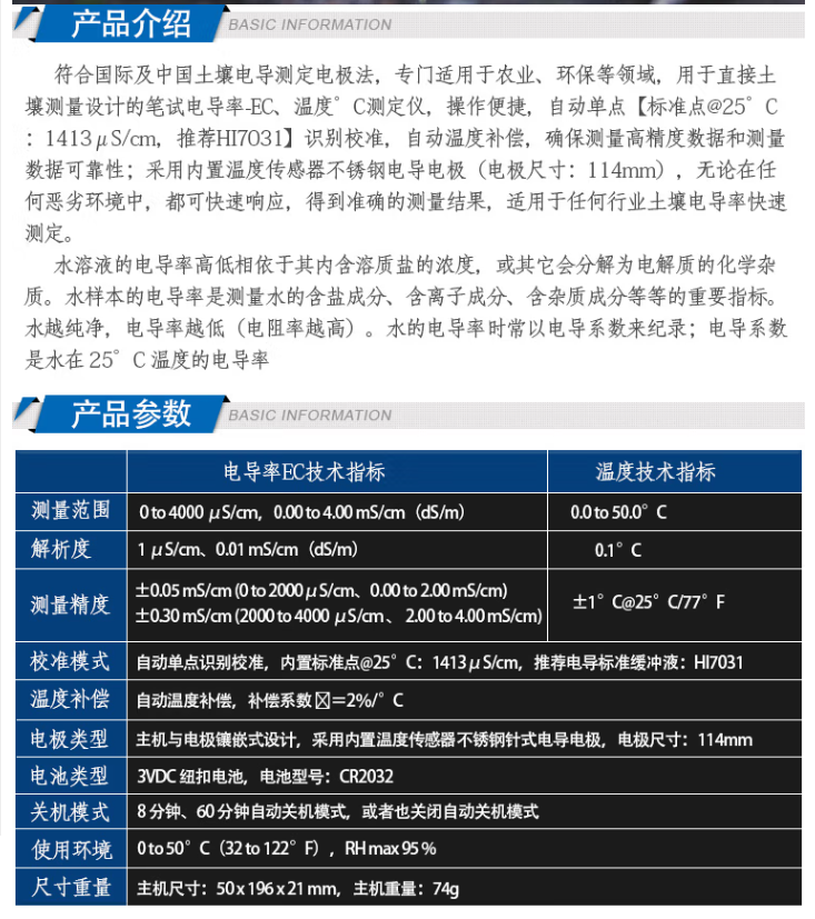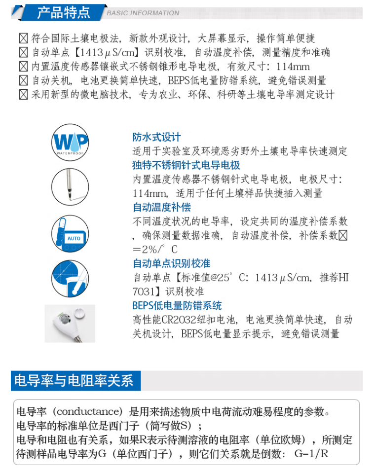 本網(wǎng)頁所展示的有關(guān)【HI98331土壤電導(dǎo)率EC -溫度℃ 測定儀 哈納HANNA】的信息/圖片/參數(shù)等由的會(huì)員【HANNA哈納 】提供,由柏萊儀器網(wǎng)-專業(yè)銷售儀器儀表服務(wù)商-深圳柏萊科技有限公司會(huì)員【HANNA哈納 】自行對信息/圖片/參數(shù)等的真實(shí)性、準(zhǔn)確性和合法性負(fù)責(zé),本平臺(tái)(本網(wǎng)站)僅提供展示服務(wù),請謹(jǐn)慎交易,因交易而產(chǎn)生的法律關(guān)系及法律糾紛由您自行協(xié)商解決,本平臺(tái)(本網(wǎng)站)對此不承擔(dān)任何責(zé)任。您在本網(wǎng)頁可以瀏覽【HI98331土壤電導(dǎo)率EC -溫度℃ 測定儀 哈納HANNA】有關(guān)的信息/圖片/價(jià)格等及提供 【HI98331土壤電導(dǎo)率EC -溫度℃ 測定儀 哈納HANNA】的商家公司簡介、聯(lián)系方式等信息。