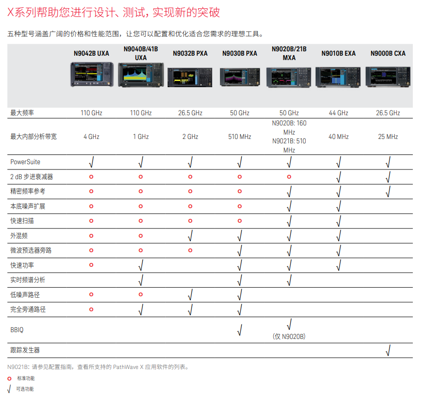 建立創(chuàng)新橋梁 工程的內涵就是將各種創(chuàng)意有機地聯(lián)系起來,并解決遇到的問題。X 系列信號分析儀 依托這一理念而設計:它們樹立了切實可用的性能標桿,通過將問題原因與結果表現(xiàn) 輕松聯(lián)系起來,讓您更容易找到答案。 從 CXA 到 UXA,X 系列分析儀提供了十分廣泛的選擇。選擇 X 系列,建立創(chuàng)新橋梁。 通用的多點觸控用戶界面交付更佳結果 通過 X 系列精簡的多點觸控用戶界面,您最多只需兩步即可完成大多數(shù)操作。為了 保證測量的完整性以及結果的可重復性,我們在每一臺 X 系列信號分析儀上都采用了 經(jīng)過驗證的相同算法。 為了保護您的儀器投資,我們在整個系列內實現(xiàn)了 100% 的代碼兼容性,使您能夠從 研發(fā)到設計驗證、再到生產環(huán)節(jié)充分利用我們的測試系統(tǒng)軟件。 通過測量應用軟件查看并了解器件性能 通過混合、搭配我們的分析儀、測量應用軟件,輕松滿足您的特定需求。PathWave X 系列的應用軟件是經(jīng)過驗證的現(xiàn)成測量工具,綜合了豐富的測量專業(yè)技術,能夠提供 可重復的結果。 我們先進的軟件支持超過 75 種信號標準和調制類型,有助于加速您的設計,確保您 能對信號進行精確測量。