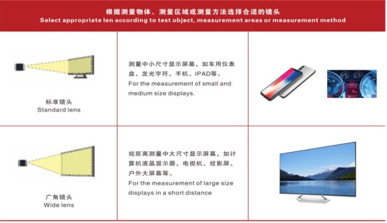 儀表盤、數(shù)碼管、背光源、手機(jī)屏、LED顯示屏、OLED屏、FPD平板電視、投影屏幕、道路照明、景觀照明等的亮度及亮度均勻性的測試。