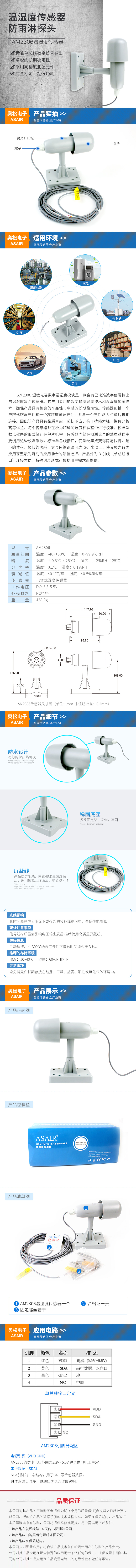 AM2306 濕敏電容數(shù)字溫濕度模塊是一款含有己校準(zhǔn)數(shù)字信號(hào)輸出的溫濕度復(fù)合傳感器。它應(yīng)用專用的數(shù)字模塊采集技術(shù)和溫濕度傳感技術(shù),確保產(chǎn)品具有極高的可靠性與卓越的長(zhǎng)期穩(wěn)定性。傳感器包括一個(gè)電容式感濕元件和一個(gè)高精度測(cè)溫元件,并與一個(gè)高性能 8 位單片機(jī)相連接。因此該產(chǎn)品具有品質(zhì)卓越、超快響應(yīng)、抗干擾能力強(qiáng)、性價(jià)比極高等優(yōu)點(diǎn)。每個(gè)傳感器都在極為精確的濕度校驗(yàn)室中進(jìn)行校準(zhǔn)。校準(zhǔn)系數(shù)以程序的形式儲(chǔ)存在單片機(jī)中,傳感器內(nèi)部在檢測(cè)信號(hào)的處理過程中要調(diào)用這些校準(zhǔn)系數(shù)。標(biāo)準(zhǔn)單總線接口,使系統(tǒng)集成變得簡(jiǎn)易快捷。超小的體積、極低的功耗,信號(hào)傳輸距離可達(dá) 20 米以上,使其成為各類應(yīng)用甚至最為苛刻的應(yīng)用場(chǎng)合的最佳選擇。產(chǎn)品分為 3 引線(單總線接口)連接方便。特殊封裝形式可根據(jù)用戶需求而提供。