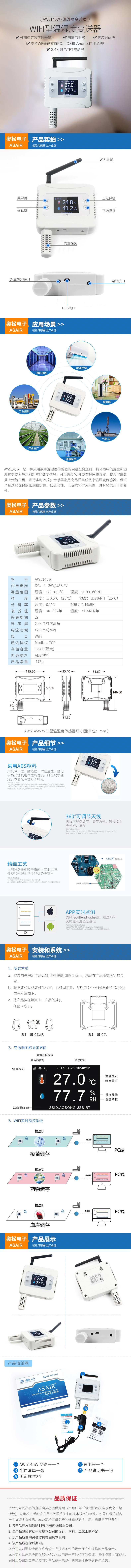 AW5145W 是一種采用數(shù)字溫濕度傳感器的網(wǎng)絡(luò)型變送器,將環(huán)境中的溫度和濕度轉(zhuǎn)變成與之相對應(yīng)的數(shù)字信號;可以通過 WIFI 或有線網(wǎng)絡(luò)連接,將溫濕度數(shù)據(jù)上傳給主機(jī),進(jìn)行實(shí)時(shí)監(jiān)控;傳感器選用高品質(zhì)集成數(shù)字溫濕度傳感器,保證了變送器優(yōu)良的長期穩(wěn)定性、低延滯性、以及抗化學(xué)污染性,具有極優(yōu)的可重復(fù)性。