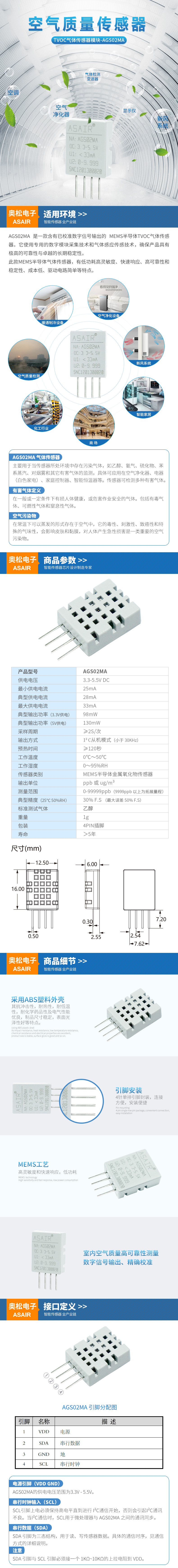 AGS02MA 是一款含有已校準(zhǔn)數(shù)字信號輸出的 MEMS半導(dǎo)體智能TVOC 氣體傳感器。它使用專用的數(shù)字模塊采集技術(shù)和氣體感應(yīng)傳感技術(shù),確保產(chǎn)品具有極高的可靠性與卓越的長期穩(wěn)定性。此款 MEMS 氣體傳感器,有低功耗高靈敏度、快速響應(yīng)、高可靠性和穩(wěn)定性、成本低、驅(qū)動電路簡單等特點(diǎn)。