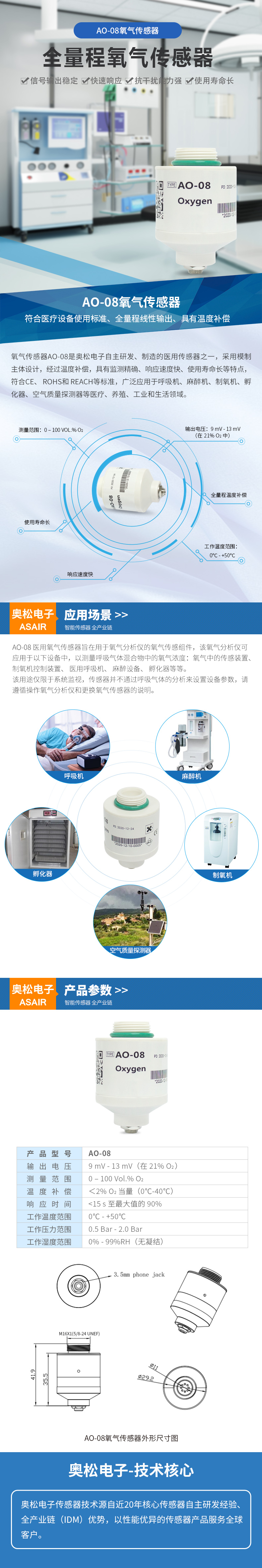 AO-08 是奧松電子的醫(yī)用氧氣傳感器。高品質(zhì)的 AO-08 氧氣傳感器具有長壽命和快速響應(yīng)的特點(diǎn),并采用了模制主體設(shè)計(jì),專門用于醫(yī)療設(shè)備。AO-08 的成本低于其更換的傳感器,從而在節(jié)省成本的同時提供了卓越的質(zhì)量。