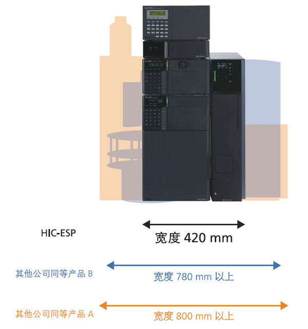 HIC-ESP 設計緊湊,整套系統(tǒng)裝置寬度僅為 420 mm,大大減少實驗室空間占用,有效提升實驗室空間利用率。
