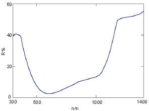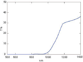 此圖是多晶硅樣品的透過率譜圖,由于系統(tǒng)具有測定到1400nm的能力,清晰顯示了帶隙區(qū)域(1000nm附近)的透過率特征。