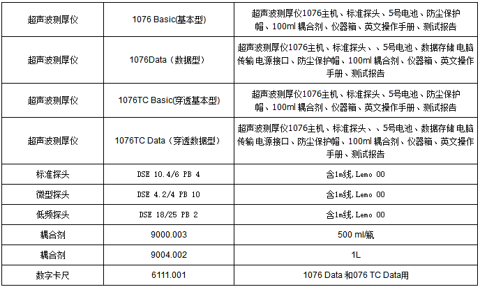 德國(guó)卡爾德意志KD1076系列超聲波測(cè)厚儀標(biāo)準(zhǔn)配置