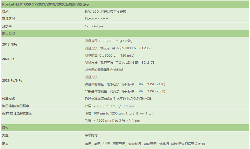 德國卡爾德意ECHOMETER Pocket-LEPTOSKOP系列涂層測厚儀特點
