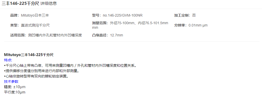 本網頁所展示的有關【三豐 146-225千分尺】的信息/圖片/參數(shù)等由的會員【日本三豐mitutoyo-深圳柏萊科技有限公司 】提供,由柏萊儀器網-專業(yè)銷售儀器儀表服務商-深圳柏萊科技有限公司會員【日本三豐mitutoyo-深圳柏萊科技有限公司 】自行對信息/圖片/參數(shù)等的真實性、準確性和合法性負責,本平臺(本網站)僅提供展示服務,請謹慎交易,因交易而產生的法律關系及法律糾紛由您自行協(xié)商解決,本平臺(本網站)對此不承擔任何責任。您在本網頁可以瀏覽【三豐 146-225千分尺】有關的信息/圖片/價格等及提供 【三豐 146-225千分尺】的商家公司簡介、聯(lián)系方式等信息。