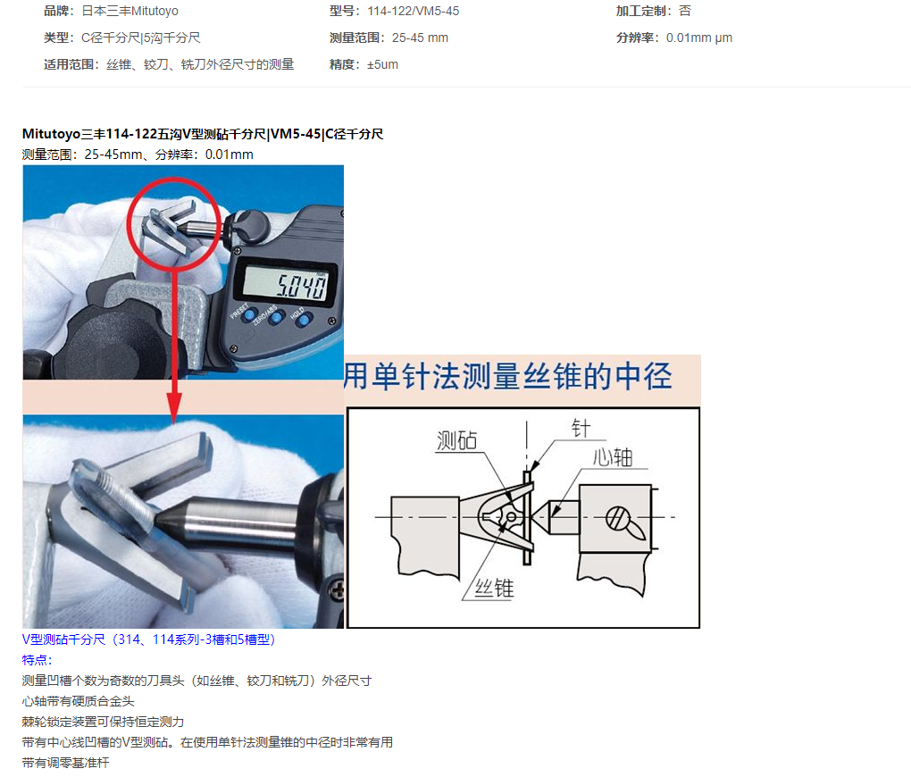 本網(wǎng)頁所展示的有關(guān)【三豐 114-122五溝V型測(cè)砧千分尺】的信息/圖片/參數(shù)等由的會(huì)員【日本三豐mitutoyo-深圳柏萊科技有限公司 】提供,由柏萊儀器網(wǎng)-專業(yè)銷售儀器儀表服務(wù)商-深圳柏萊科技有限公司會(huì)員【日本三豐mitutoyo-深圳柏萊科技有限公司 】自行對(duì)信息/圖片/參數(shù)等的真實(shí)性、準(zhǔn)確性和合法性負(fù)責(zé),本平臺(tái)(本網(wǎng)站)僅提供展示服務(wù),請(qǐng)謹(jǐn)慎交易,因交易而產(chǎn)生的法律關(guān)系及法律糾紛由您自行協(xié)商解決,本平臺(tái)(本網(wǎng)站)對(duì)此不承擔(dān)任何責(zé)任。您在本網(wǎng)頁可以瀏覽【三豐 114-122五溝V型測(cè)砧千分尺】有關(guān)的信息/圖片/價(jià)格等及提供 【三豐 114-122五溝V型測(cè)砧千分尺】的商家公司簡介、聯(lián)系方式等信息。