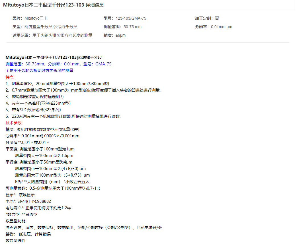 本網(wǎng)頁所展示的有關(guān)【三豐 123-103盤型千分尺】的信息/圖片/參數(shù)等由的會員【日本三豐mitutoyo-深圳柏萊科技有限公司 】提供,由柏萊儀器網(wǎng)-專業(yè)銷售儀器儀表服務(wù)商-深圳柏萊科技有限公司會員【日本三豐mitutoyo-深圳柏萊科技有限公司 】自行對信息/圖片/參數(shù)等的真實性、準(zhǔn)確性和合法性負(fù)責(zé),本平臺(本網(wǎng)站)僅提供展示服務(wù),請謹(jǐn)慎交易,因交易而產(chǎn)生的法律關(guān)系及法律糾紛由您自行協(xié)商解決,本平臺(本網(wǎng)站)對此不承擔(dān)任何責(zé)任。您在本網(wǎng)頁可以瀏覽【三豐 123-103盤型千分尺】有關(guān)的信息/圖片/價格等及提供 【三豐 123-103盤型千分尺】的商家公司簡介、聯(lián)系方式等信息。