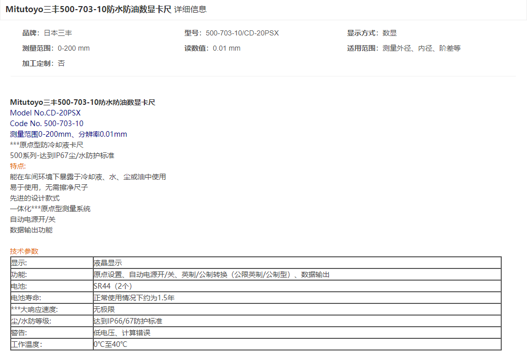 本網(wǎng)頁(yè)所展示的有關(guān)【三豐500-703-10防水防油數(shù)顯卡尺】的信息/圖片/參數(shù)等由的會(huì)員【日本三豐mitutoyo-深圳柏萊科技有限公司 】提供,由柏萊儀器網(wǎng)-專業(yè)銷售儀器儀表服務(wù)商-深圳柏萊科技有限公司會(huì)員【日本三豐mitutoyo-深圳柏萊科技有限公司 】自行對(duì)信息/圖片/參數(shù)等的真實(shí)性、準(zhǔn)確性和合法性負(fù)責(zé),本平臺(tái)(本網(wǎng)站)僅提供展示服務(wù),請(qǐng)謹(jǐn)慎交易,因交易而產(chǎn)生的法律關(guān)系及法律糾紛由您自行協(xié)商解決,本平臺(tái)(本網(wǎng)站)對(duì)此不承擔(dān)任何責(zé)任。您在本網(wǎng)頁(yè)可以瀏覽【三豐500-703-10防水防油數(shù)顯卡尺】有關(guān)的信息/圖片/價(jià)格等及提供 【三豐500-703-10防水防油數(shù)顯卡尺】的商家公司簡(jiǎn)介、聯(lián)系方式等信息。