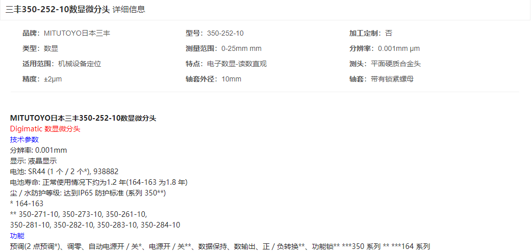 本網(wǎng)頁所展示的有關(guān)【三豐 350-252-10數(shù)顯微分頭】的信息/圖片/參數(shù)等由的會員【日本三豐mitutoyo-深圳柏萊科技有限公司 】提供,由柏萊儀器網(wǎng)-專業(yè)銷售儀器儀表服務(wù)商-深圳柏萊科技有限公司會員【日本三豐mitutoyo-深圳柏萊科技有限公司 】自行對信息/圖片/參數(shù)等的真實(shí)性、準(zhǔn)確性和合法性負(fù)責(zé),本平臺(本網(wǎng)站)僅提供展示服務(wù),請謹(jǐn)慎交易,因交易而產(chǎn)生的法律關(guān)系及法律糾紛由您自行協(xié)商解決,本平臺(本網(wǎng)站)對此不承擔(dān)任何責(zé)任。您在本網(wǎng)頁可以瀏覽【三豐 350-252-10數(shù)顯微分頭】有關(guān)的信息/圖片/價格等及提供 【三豐 350-252-10數(shù)顯微分頭】的商家公司簡介、聯(lián)系方式等信息。