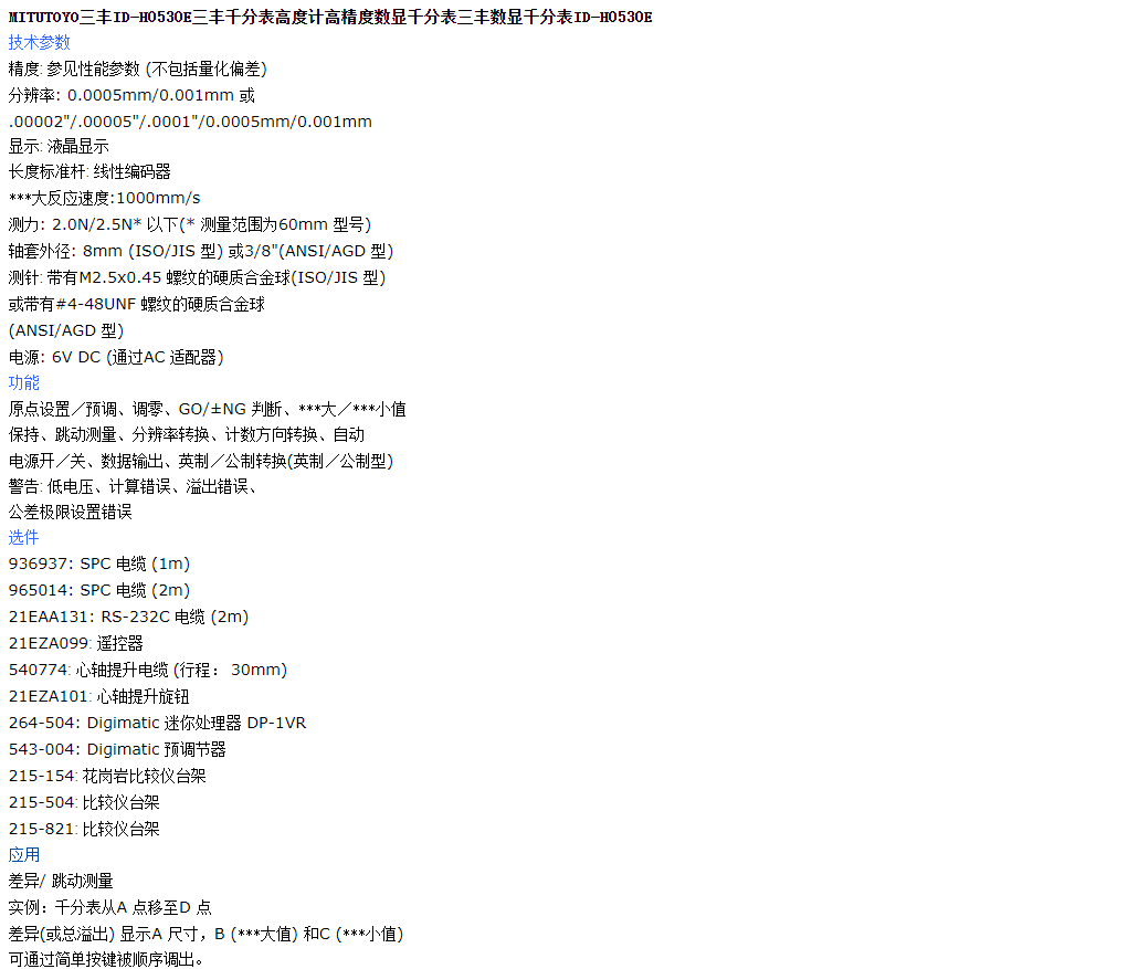本網(wǎng)頁所展示的有關(guān)【三豐 ID-H0530E千分表】的信息/圖片/參數(shù)等由的會(huì)員【日本三豐mitutoyo-深圳柏萊科技有限公司 】提供,由柏萊儀器網(wǎng)-專業(yè)銷售儀器儀表服務(wù)商-深圳柏萊科技有限公司會(huì)員【日本三豐mitutoyo-深圳柏萊科技有限公司 】自行對信息/圖片/參數(shù)等的真實(shí)性、準(zhǔn)確性和合法性負(fù)責(zé),本平臺(tái)(本網(wǎng)站)僅提供展示服務(wù),請謹(jǐn)慎交易,因交易而產(chǎn)生的法律關(guān)系及法律糾紛由您自行協(xié)商解決,本平臺(tái)(本網(wǎng)站)對此不承擔(dān)任何責(zé)任。您在本網(wǎng)頁可以瀏覽【三豐 ID-H0530E千分表】有關(guān)的信息/圖片/價(jià)格等及提供 【三豐 ID-H0530E千分表】的商家公司簡介、聯(lián)系方式等信息。