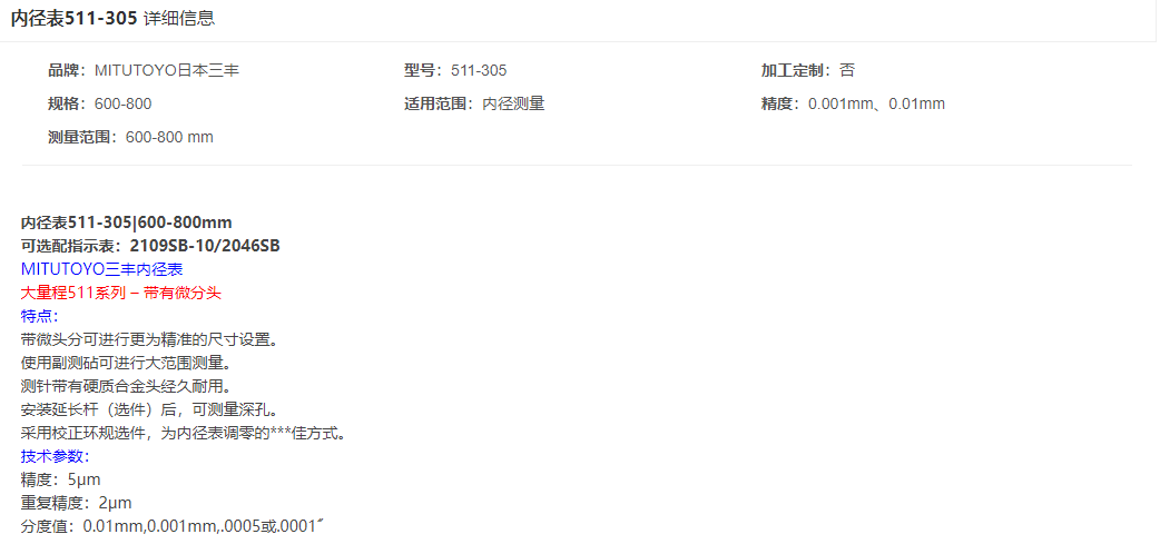 本網(wǎng)頁(yè)所展示的有關(guān)【三豐 511-305內(nèi)徑表】的信息/圖片/參數(shù)等由的會(huì)員【日本三豐mitutoyo-深圳柏萊科技有限公司 】提供,由柏萊儀器網(wǎng)-專業(yè)銷(xiāo)售儀器儀表服務(wù)商-深圳柏萊科技有限公司會(huì)員【日本三豐mitutoyo-深圳柏萊科技有限公司 】自行對(duì)信息/圖片/參數(shù)等的真實(shí)性、準(zhǔn)確性和合法性負(fù)責(zé),本平臺(tái)(本網(wǎng)站)僅提供展示服務(wù),請(qǐng)謹(jǐn)慎交易,因交易而產(chǎn)生的法律關(guān)系及法律糾紛由您自行協(xié)商解決,本平臺(tái)(本網(wǎng)站)對(duì)此不承擔(dān)任何責(zé)任。您在本網(wǎng)頁(yè)可以瀏覽【三豐 511-305內(nèi)徑表】有關(guān)的信息/圖片/價(jià)格等及提供 【三豐 511-305內(nèi)徑表】的商家公司簡(jiǎn)介、聯(lián)系方式等信息。