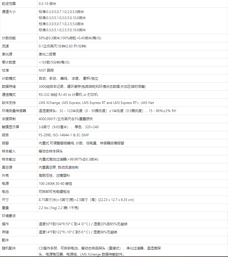 手持式空氣粒子計數(shù)器和空氣PM2.5空氣粒子計數(shù)器:0.3微米感應(yīng)度,0.1CFM 流量。