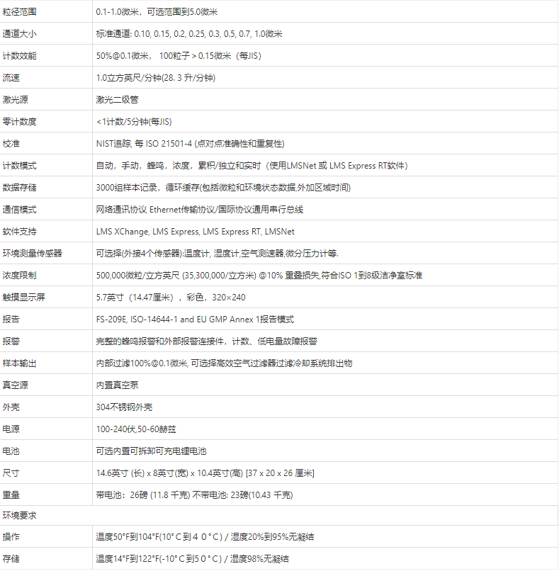 高效空氣過濾器和熱控制排氣選項(xiàng)可以阻止粒子流出。帶有鋰電池的情況下重26磅(11.8千克),Solair1100是市場上最小最輕的0.1微米感應(yīng)度、1立方英尺/分鐘流速的便攜式粒子計(jì)數(shù)器。