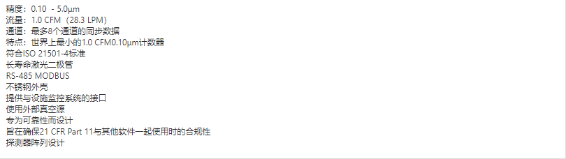Remote 1104LD采用的光學(xué)和光電二極管系統(tǒng),以在1.0CFM(28.3LPM)高流速下可監(jiān)測(cè)最小0.10微米精度的顆粒,其提供連續(xù)的實(shí)時(shí)數(shù)據(jù),相對(duì)每點(diǎn)的價(jià)格更經(jīng)濟(jì)實(shí)惠。