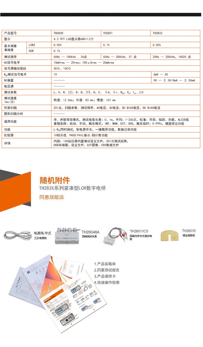 本網(wǎng)頁所展示的有關(guān)【TH2830數(shù)字電橋 LCR 高精度電容電感電阻測試儀 同惠tonghui】的信息/圖片/參數(shù)等由的會員【同惠電子 -深圳柏萊科技有限公司 】提供,由柏萊儀器網(wǎng)-專業(yè)銷售儀器儀表服務(wù)商-深圳柏萊科技有限公司會員【同惠電子 -深圳柏萊科技有限公司 】自行對信息/圖片/參數(shù)等的真實性、準(zhǔn)確性和合法性負(fù)責(zé),本平臺(本網(wǎng)站)僅提供展示服務(wù),請謹(jǐn)慎交易,因交易而產(chǎn)生的法律關(guān)系及法律糾紛由您自行協(xié)商解決,本平臺(本網(wǎng)站)對此不承擔(dān)任何責(zé)任。您在本網(wǎng)頁可以瀏覽【TH2830數(shù)字電橋 LCR 高精度電容電感電阻測試儀 同惠tonghui】有關(guān)的信息/圖片/價格等及提供 【TH2830數(shù)字電橋 LCR 高精度電容電感電阻測試儀 同惠tonghui】的商家公司簡介、聯(lián)系方式等信息。