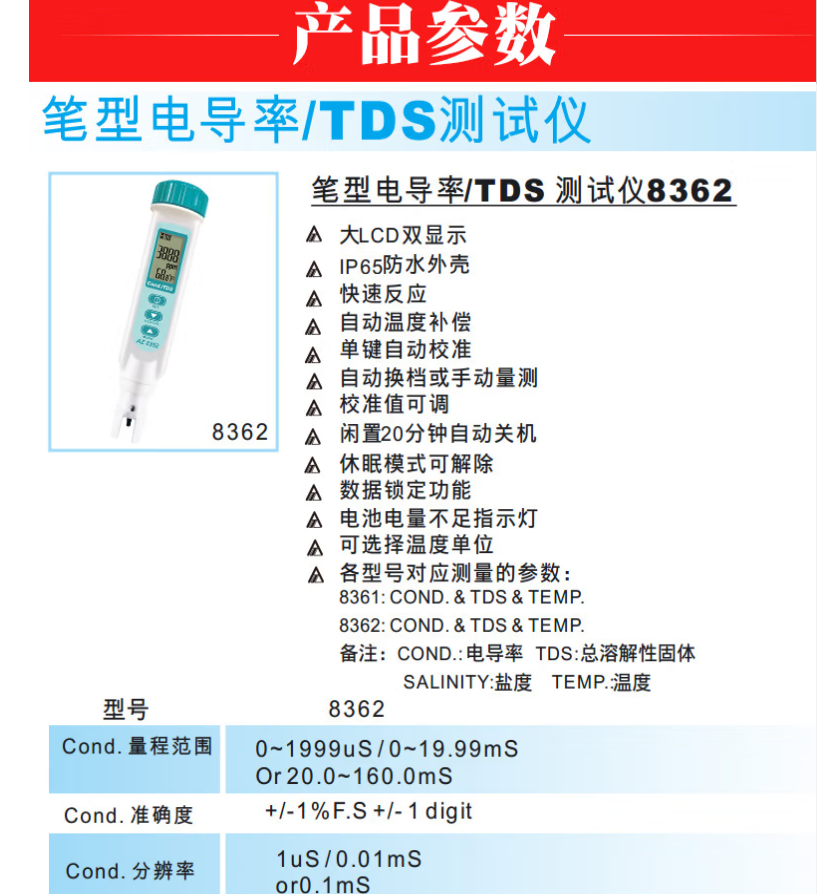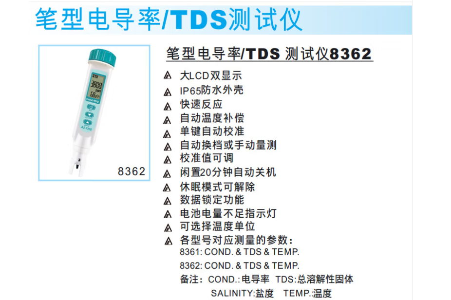 本網(wǎng)頁所展示的有關(guān)【衡欣AZ8362電導(dǎo)率儀實驗室TDS水質(zhì)分析檢測筆 EC計電導(dǎo)測試儀】的信息/圖片/參數(shù)等由的會員【臺灣衡欣AZ-深圳柏萊科技有限公司 】提供,由柏萊儀器網(wǎng)-專業(yè)銷售儀器儀表服務(wù)商-深圳柏萊科技有限公司會員【臺灣衡欣AZ-深圳柏萊科技有限公司 】自行對信息/圖片/參數(shù)等的真實性、準(zhǔn)確性和合法性負(fù)責(zé),本平臺(本網(wǎng)站)僅提供展示服務(wù),請謹(jǐn)慎交易,因交易而產(chǎn)生的法律關(guān)系及法律糾紛由您自行協(xié)商解決,本平臺(本網(wǎng)站)對此不承擔(dān)任何責(zé)任。您在本網(wǎng)頁可以瀏覽【衡欣AZ8362電導(dǎo)率儀實驗室TDS水質(zhì)分析檢測筆 EC計電導(dǎo)測試儀】有關(guān)的信息/圖片/價格等及提供 【衡欣AZ8362電導(dǎo)率儀實驗室TDS水質(zhì)分析檢測筆 EC計電導(dǎo)測試儀】的商家公司簡介、聯(lián)系方式等信息。