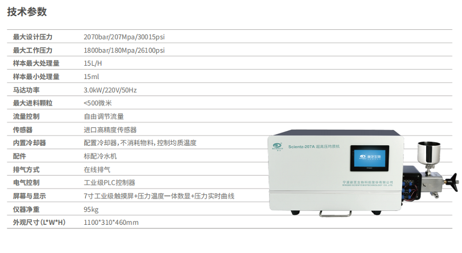 本網(wǎng)頁所展示的有關(guān)【超高壓均質(zhì)機(jī) 新芝SCIENTZ-207A】的信息/圖片/參數(shù)等由的會員【寧波新芝生物-深圳柏萊科技有限公司 】提供,由柏萊儀器網(wǎng)-專業(yè)銷售儀器儀表服務(wù)商-深圳柏萊科技有限公司會員【寧波新芝生物-深圳柏萊科技有限公司 】自行對信息/圖片/參數(shù)等的真實(shí)性、準(zhǔn)確性和合法性負(fù)責(zé),本平臺(本網(wǎng)站)僅提供展示服務(wù),請謹(jǐn)慎交易,因交易而產(chǎn)生的法律關(guān)系及法律糾紛由您自行協(xié)商解決,本平臺(本網(wǎng)站)對此不承擔(dān)任何責(zé)任。您在本網(wǎng)頁可以瀏覽【超高壓均質(zhì)機(jī) 新芝SCIENTZ-207A】有關(guān)的信息/圖片/價(jià)格等及提供 【超高壓均質(zhì)機(jī) 新芝SCIENTZ-207A】的商家公司簡介、聯(lián)系方式等信息。