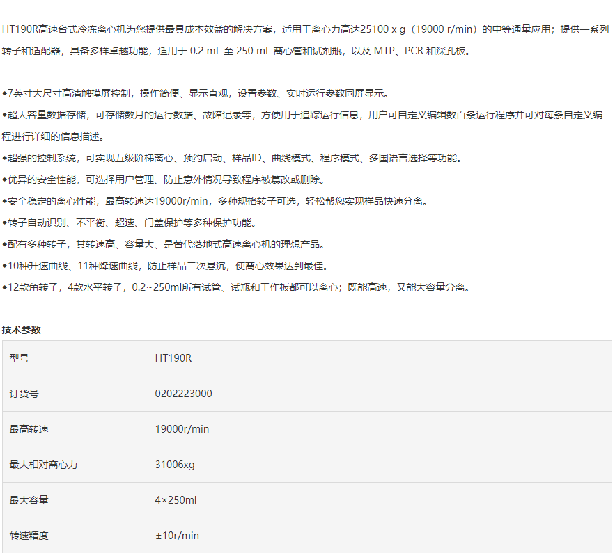 本網(wǎng)頁所展示的有關【高速臺式冷凍離心機 湘儀HT190R】的信息/圖片/參數(shù)等由的會員【湘儀cence-深圳柏萊科技有限公司 】提供,由柏萊儀器網(wǎng)-專業(yè)銷售儀器儀表服務商-深圳柏萊科技有限公司會員【湘儀cence-深圳柏萊科技有限公司 】自行對信息/圖片/參數(shù)等的真實性、準確性和合法性負責,本平臺(本網(wǎng)站)僅提供展示服務,請謹慎交易,因交易而產(chǎn)生的法律關系及法律糾紛由您自行協(xié)商解決,本平臺(本網(wǎng)站)對此不承擔任何責任。您在本網(wǎng)頁可以瀏覽【高速臺式冷凍離心機 湘儀HT190R】有關的信息/圖片/價格等及提供 【高速臺式冷凍離心機 湘儀HT190R】的商家公司簡介、聯(lián)系方式等信息。