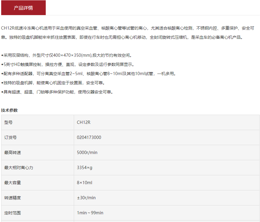 本網(wǎng)頁(yè)所展示的有關(guān)【采血車專用冷凍離心機(jī) 湘儀CH12R】的信息/圖片/參數(shù)等由的會(huì)員【湘儀cence-深圳柏萊科技有限公司 】提供,由柏萊儀器網(wǎng)-專業(yè)銷售儀器儀表服務(wù)商-深圳柏萊科技有限公司會(huì)員【湘儀cence-深圳柏萊科技有限公司 】自行對(duì)信息/圖片/參數(shù)等的真實(shí)性、準(zhǔn)確性和合法性負(fù)責(zé),本平臺(tái)(本網(wǎng)站)僅提供展示服務(wù),請(qǐng)謹(jǐn)慎交易,因交易而產(chǎn)生的法律關(guān)系及法律糾紛由您自行協(xié)商解決,本平臺(tái)(本網(wǎng)站)對(duì)此不承擔(dān)任何責(zé)任。您在本網(wǎng)頁(yè)可以瀏覽【采血車專用冷凍離心機(jī) 湘儀CH12R】有關(guān)的信息/圖片/價(jià)格等及提供 【采血車專用冷凍離心機(jī) 湘儀CH12R】的商家公司簡(jiǎn)介、聯(lián)系方式等信息。