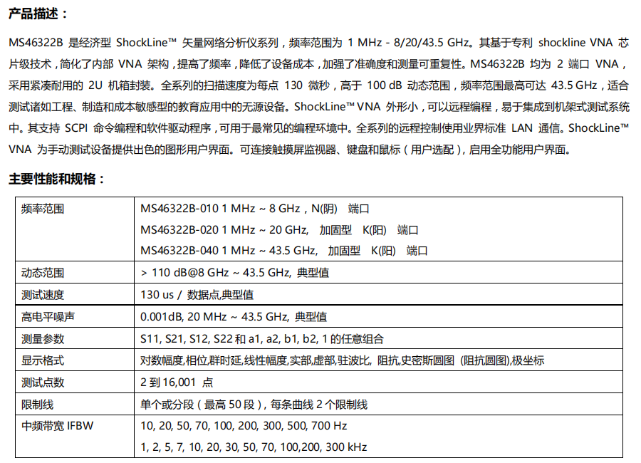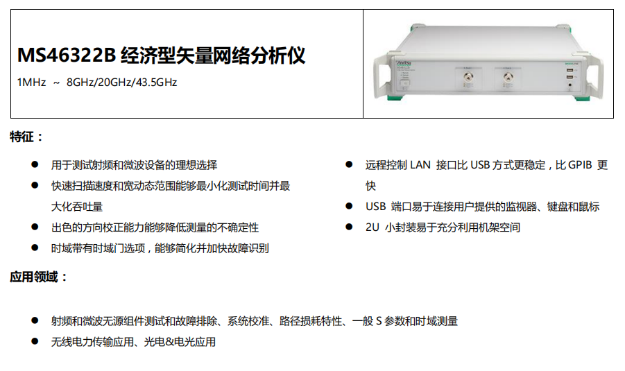 經(jīng)濟型矢量網(wǎng)絡(luò)分析儀MS46322B