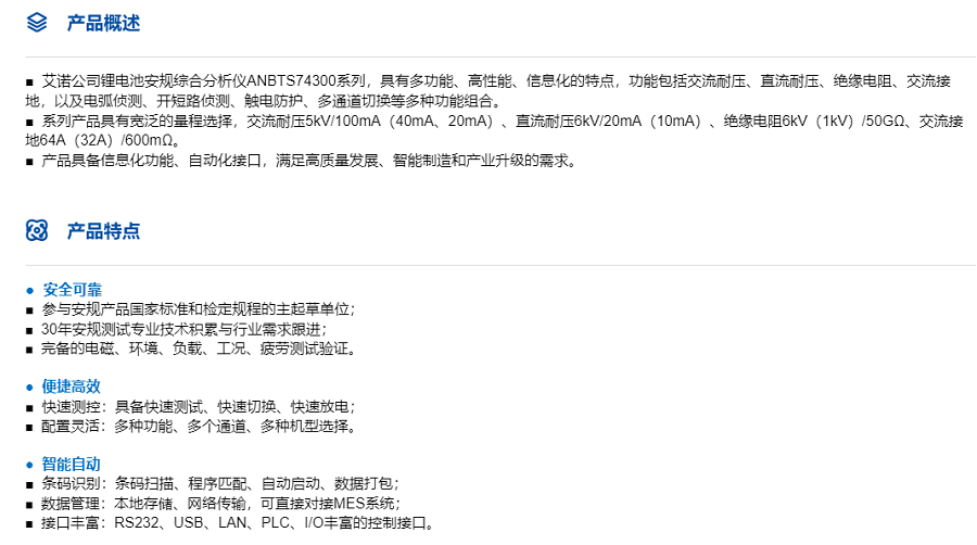 本網(wǎng)頁所展示的有關(guān)【鋰電池安規(guī)綜合分析儀ANBTS74300系列】的信息/圖片/參數(shù)等由的會(huì)員【艾諾ainuo -深圳柏萊科技有限公司 】提供,由柏萊儀器網(wǎng)-專業(yè)銷售儀器儀表服務(wù)商-深圳柏萊科技有限公司會(huì)員【艾諾ainuo -深圳柏萊科技有限公司 】自行對信息/圖片/參數(shù)等的真實(shí)性、準(zhǔn)確性和合法性負(fù)責(zé),本平臺(tái)(本網(wǎng)站)僅提供展示服務(wù),請謹(jǐn)慎交易,因交易而產(chǎn)生的法律關(guān)系及法律糾紛由您自行協(xié)商解決,本平臺(tái)(本網(wǎng)站)對此不承擔(dān)任何責(zé)任。您在本網(wǎng)頁可以瀏覽【鋰電池安規(guī)綜合分析儀ANBTS74300系列】有關(guān)的信息/圖片/價(jià)格等及提供 【鋰電池安規(guī)綜合分析儀ANBTS74300系列】的商家公司簡介、聯(lián)系方式等信息。