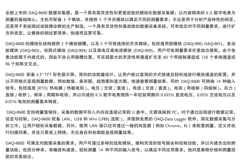 本網(wǎng)頁(yè)所展示的有關(guān)【DAQ9600數(shù)據(jù)采集器 固緯】的信息/圖片/參數(shù)等由的會(huì)員【固緯-深圳柏萊科技有限公司 】提供,由柏萊儀器網(wǎng)-專業(yè)銷售儀器儀表服務(wù)商-深圳柏萊科技有限公司會(huì)員【固緯-深圳柏萊科技有限公司 】自行對(duì)信息/圖片/參數(shù)等的真實(shí)性、準(zhǔn)確性和合法性負(fù)責(zé),本平臺(tái)(本網(wǎng)站)僅提供展示服務(wù),請(qǐng)謹(jǐn)慎交易,因交易而產(chǎn)生的法律關(guān)系及法律糾紛由您自行協(xié)商解決,本平臺(tái)(本網(wǎng)站)對(duì)此不承擔(dān)任何責(zé)任。您在本網(wǎng)頁(yè)可以瀏覽【DAQ9600數(shù)據(jù)采集器 固緯】有關(guān)的信息/圖片/價(jià)格等及提供 【DAQ9600數(shù)據(jù)采集器 固緯】的商家公司簡(jiǎn)介、聯(lián)系方式等信息。