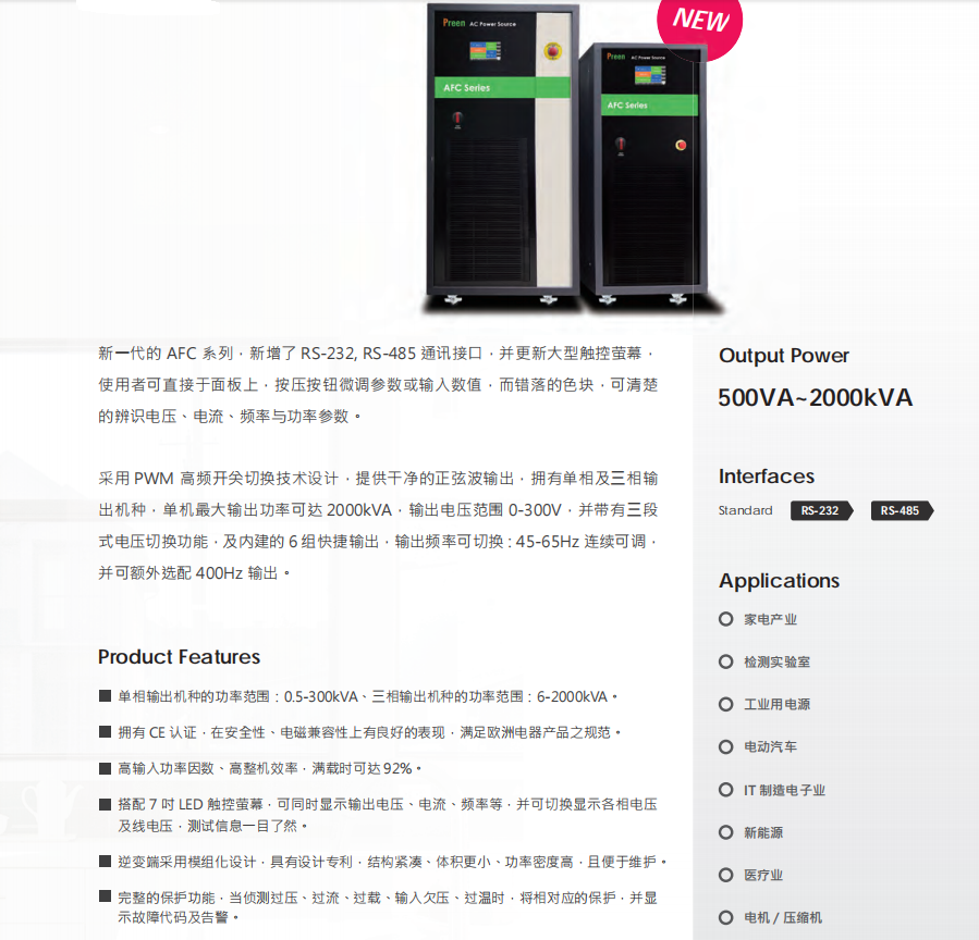 本網(wǎng)頁(yè)所展示的有關(guān)【AFC系列變頻電源】的信息/圖片/參數(shù)等由的會(huì)員【艾普斯-深圳柏萊科技有限公司 】提供,由柏萊儀器網(wǎng)-專業(yè)銷售儀器儀表服務(wù)商-深圳柏萊科技有限公司會(huì)員【艾普斯-深圳柏萊科技有限公司 】自行對(duì)信息/圖片/參數(shù)等的真實(shí)性、準(zhǔn)確性和合法性負(fù)責(zé),本平臺(tái)(本網(wǎng)站)僅提供展示服務(wù),請(qǐng)謹(jǐn)慎交易,因交易而產(chǎn)生的法律關(guān)系及法律糾紛由您自行協(xié)商解決,本平臺(tái)(本網(wǎng)站)對(duì)此不承擔(dān)任何責(zé)任。您在本網(wǎng)頁(yè)可以瀏覽【AFC系列變頻電源】有關(guān)的信息/圖片/價(jià)格等及提供 【AFC系列變頻電源】的商家公司簡(jiǎn)介、聯(lián)系方式等信息。