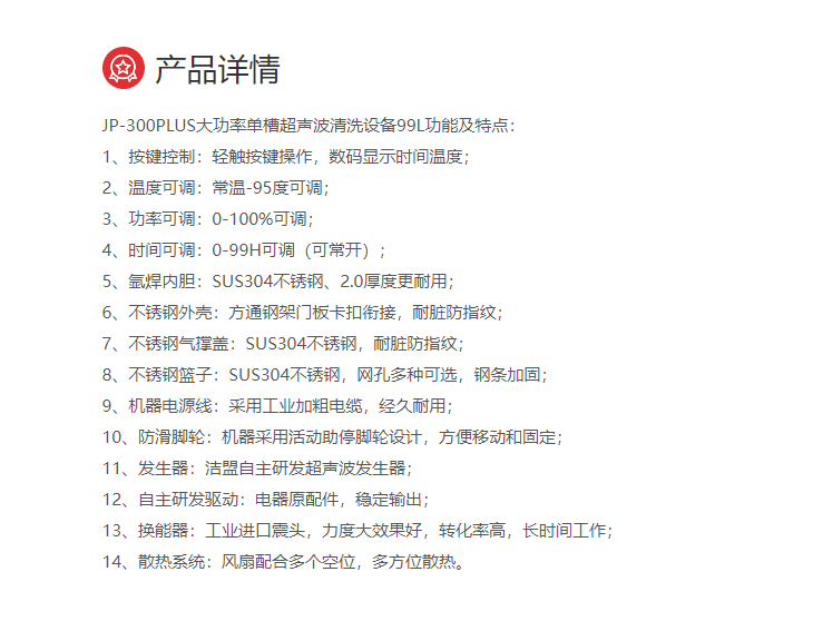 本網(wǎng)頁所展示的有關(guān)【大功率單槽超聲波清洗JP-300PLUS】的信息/圖片/參數(shù)等由的會(huì)員【潔盟-深圳柏萊科技有限公司 】提供,由柏萊儀器網(wǎng)-專業(yè)銷售儀器儀表服務(wù)商-深圳柏萊科技有限公司會(huì)員【潔盟-深圳柏萊科技有限公司 】自行對(duì)信息/圖片/參數(shù)等的真實(shí)性、準(zhǔn)確性和合法性負(fù)責(zé),本平臺(tái)(本網(wǎng)站)僅提供展示服務(wù),請(qǐng)謹(jǐn)慎交易,因交易而產(chǎn)生的法律關(guān)系及法律糾紛由您自行協(xié)商解決,本平臺(tái)(本網(wǎng)站)對(duì)此不承擔(dān)任何責(zé)任。您在本網(wǎng)頁可以瀏覽【大功率單槽超聲波清洗JP-300PLUS】有關(guān)的信息/圖片/價(jià)格等及提供 【大功率單槽超聲波清洗JP-300PLUS】的商家公司簡(jiǎn)介、聯(lián)系方式等信息。